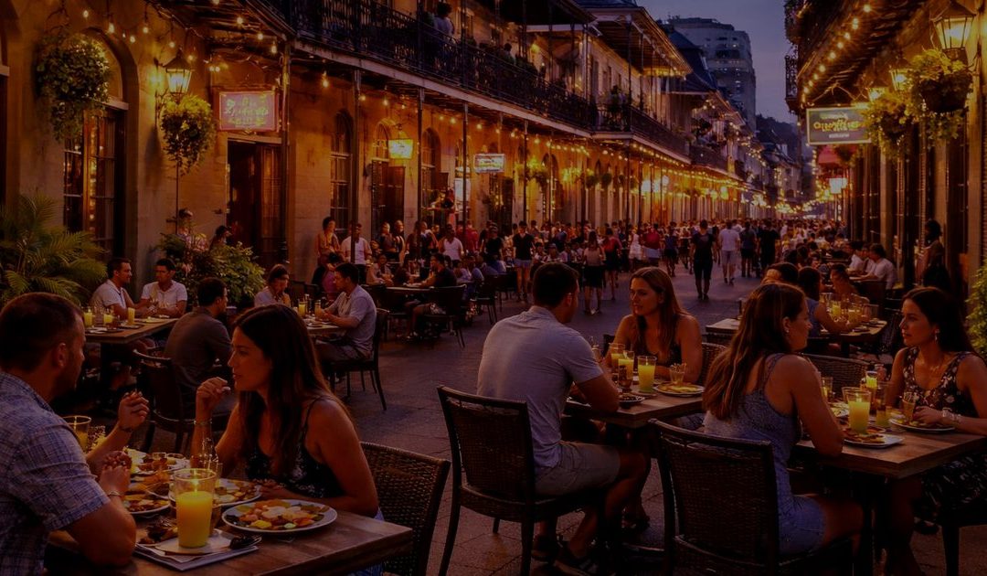 People dining in the French Quarter representing local food and culture in New Orleans